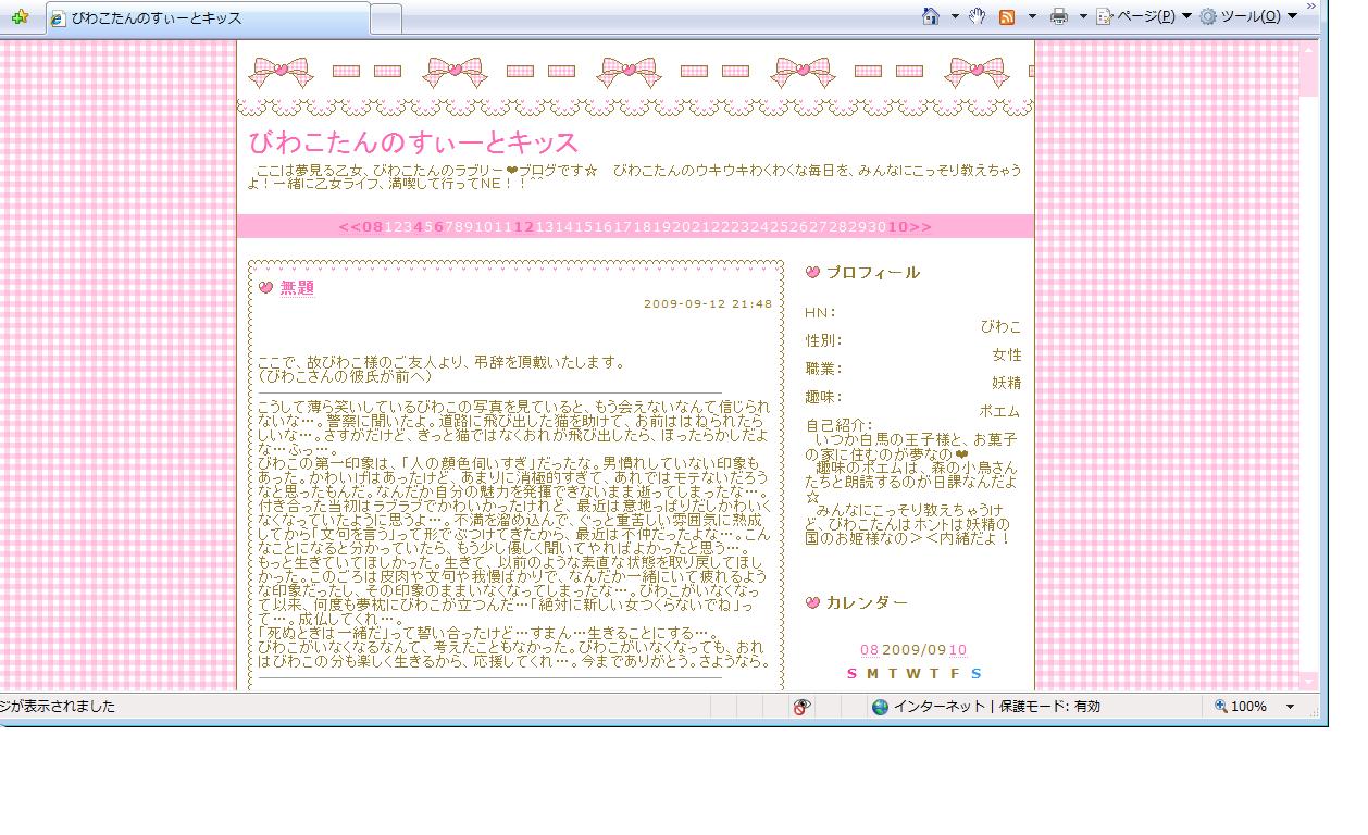 というわけでいかがでしたでしょうか、結局約三日間にわたった特別企画、「びわこたんのすぃーとキッス」。楽しんでいただけたようで、久しぶりに多くの拍手を頂きました。10ポチもくれたあしながおじさんたちに感謝。ちなみに見逃した方へ。約三日間ほどこのブログはこんなイタイことになっておりました。↓