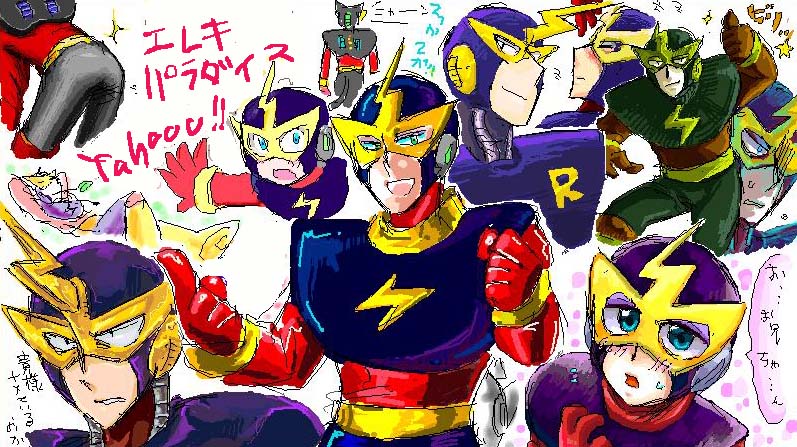中央エレキ=sたけ 中央左ショタエレキ=シメ公さん 中央右有賀エレキ=よだkさん 右上変なポーズエレキ&冷や汗エレキ=颪 右下ショタエレキ=てふこ 左下有賀エレキ=takumi.さん 左上イイ尻エレキ&右上中間スリープエレキ=ホッケさん