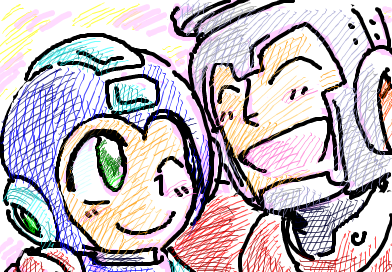 あと漫画に少し関係して…なんか私はファイヤー描いたらとかくエレキが隣にいがちですが、ファイヤーとロックという組み合わせも好きなんです…今まであんま描かなかったけど、今回で少し発散できた…!!私にとってファイヤーってごついし性格も男らしいけど、なんか中身はおバカで子供っぽいとこもあったりでDRNチビっこどもとタメはれそうな感じ、てゆうか一緒にはしゃぐ。そんなとこを見て「年齢的にはエレキマンと同じくらいなのになあ…(笑)」ってちょっぴりお兄さん心が出張るロック。