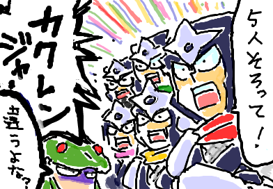 ああ・・・うん、なんかもうだめだ・・・うん・・・いやでも電撃系っつったらやっぱそういうセリフしかないし・・・うん、仕方ない・・・・・・でもなんかあいつも顔に仮面ぽいのつけとった^q^q^q^q^q^q^