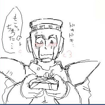 彼は本来なら紳士的に「なに、日ごろのお礼だよ、気にしないでくれたまえ」とかさらりとかっこつけて、おっされー☆な高級チョコとかロールちゃん辺りにくれそうですが、なぜかこうなってしまいました…ファイヤーのとこで個人的にときめきは補充したので、「もういいや」てなっちゃった・THE・俺の脳内。しかし4コマ目がひどすぎる^q^ツンデレなエレキマンがかわいくてからかっちゃったらえらいお怒りをくらいましたYO!もうツンデレとかじゃねえよこれ、ただの鬼畜だよ。しかしエレキマンに頂けるなら私はたとえ銀紙についたカスでもよろこんd(ry