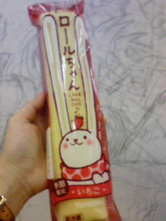きのう初めて“ロールちゃん”買いました。あ、デザートのね(当然だ)!いや食べたことはありましたが今まで全部友人のつまんでたんで…買ったことなかったんだぜ。なのである意味初ロールちゃん…記念写真もとった。先々月?まで存在知らなくて、そのとき友人が食べてて「ロールちゃんいる?」て聞かれたときは何事かと思った。めっちゃ反応した。「ロールたんうめえ」って言うもんだから、「“たん”て呼ぶな」と冷ややかにツッコまれます。別に変な意味はないですロールたん。