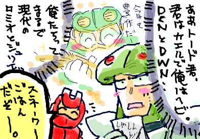 スネークマンとトードマンの組み合わせは描くより見る派なんですが、描くなら面白おかしく描きたいですね…面白いのはおもにスネークですが。←全国のスネークファンに土下座^q^