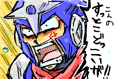 セリフは…なんか言わせてみたかったので。シャドーマンはクールなイケメン忍者マンだけど、なんかブチ切れたらこういう微妙にダサい(ふるくさい)日本語で怒りを表してくれるとおおいに楽しいです。私が。「すっとこどっこい」はおいら前にバイト先でうっかり言ったらすげえ「たけちゃんはおもしろいねー」って言われました…言わない?言わないみんな??とりあえず全国のシャドーマンファン様には、口先だけならなんとでも謝るので許していただきたい^q^。