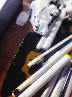 …っと思ったらこ・れ・だ・YO!!インクがいつの間にか倒れてて大惨事ですよママーー(ふたのしまりが悪かったらしい)!!ちょ、おま…インクすっからかんじゃねえか!!どうしてくれんだこれ!!うおおおおペン入れできねえええええええ!!!(泣)