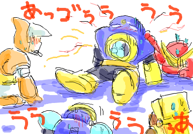 「たけがこんなにハマるって珍しいね」「お前はほんとにロックマンバカだな!!」「もうたけ、エアーマンと結婚したらいいよ^^(←お断りだね!!)」と、日々みんなに生温かく見守ってもらってます。夏休みでもうほとんど会えないけど、mixiでまた会えるからさびしくないお!!